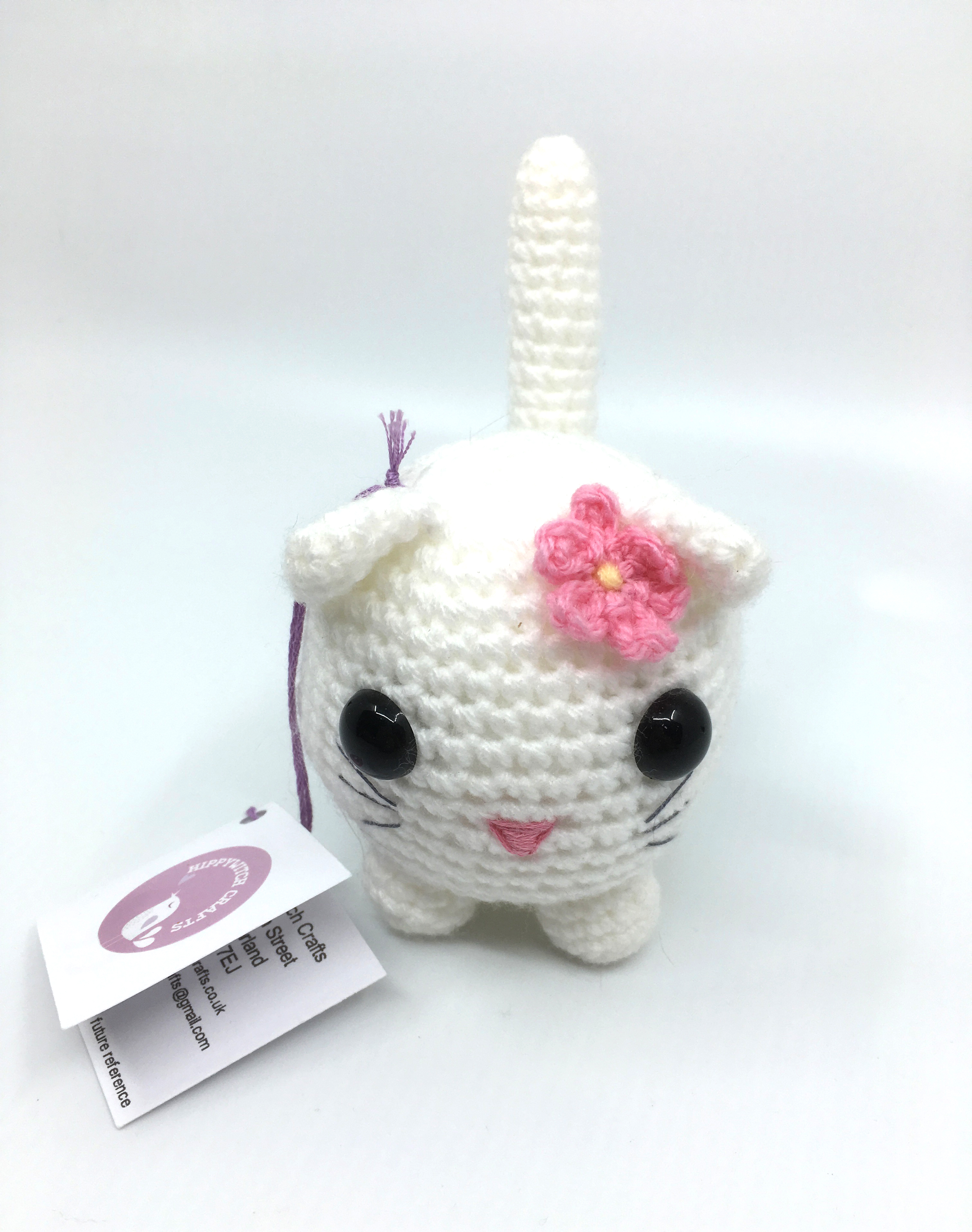 I got this supercute crocheted kitty from Hippywitch Crafts! Hippywitch is based in the UK, and she does fantastic work! This meow-kitty has been a friend of mine for a few years now, and she just keeps being cute!