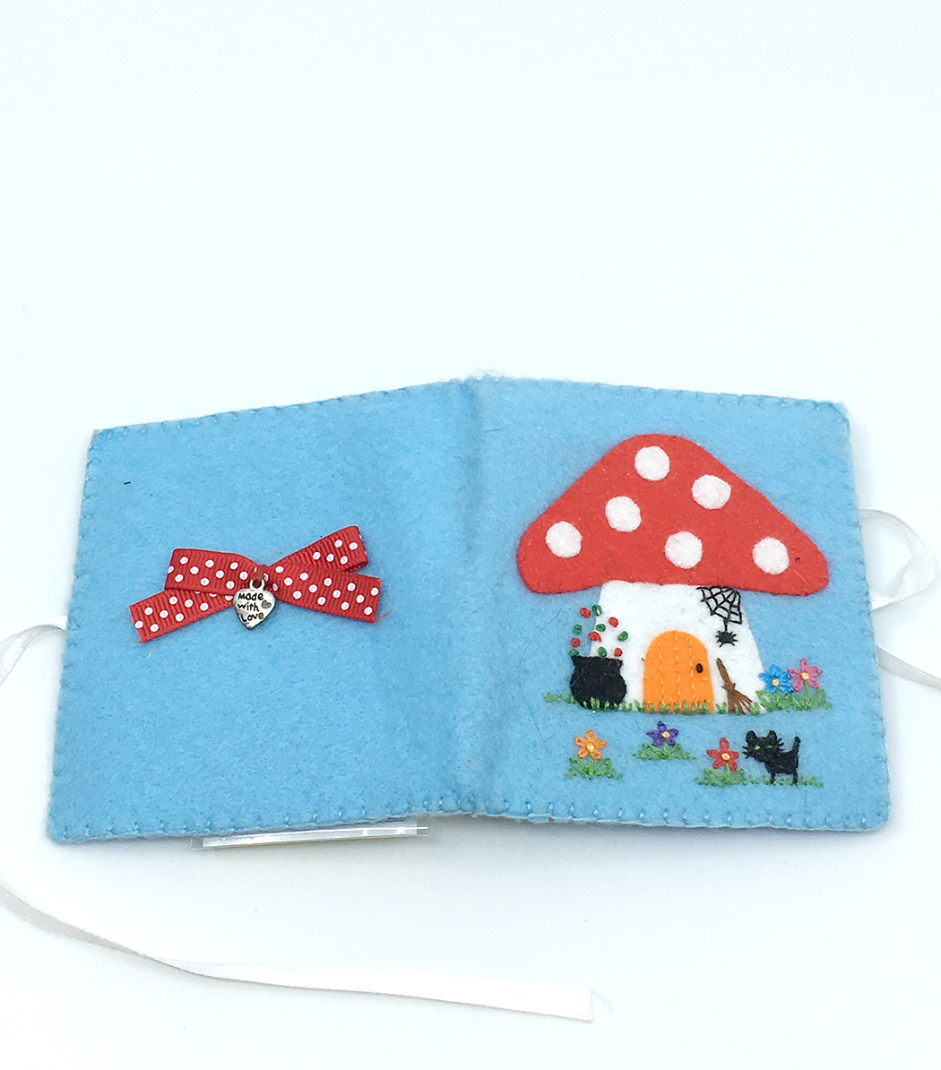 This is another supercute craft from Hippywitch Crafts! I’ve had this item for a long time, so it is well-used. It is a little book to hold sewing needles! I use it all the time and it is not only cute, but practical. (Sorry about the stray cat hairs in the pic. LOL)
