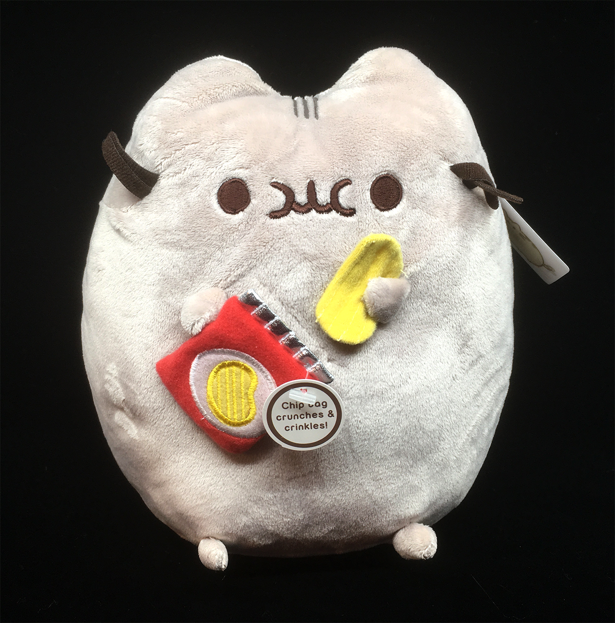 This supercute Pusheen is eating chippies. It is so funny, because the little bag actually does make chip bag sounds when you press it! LOL.